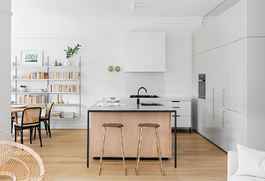 设计用于与用餐区和休息室互动,厨房提供中央枢纽,而物体的添加则协调整体。